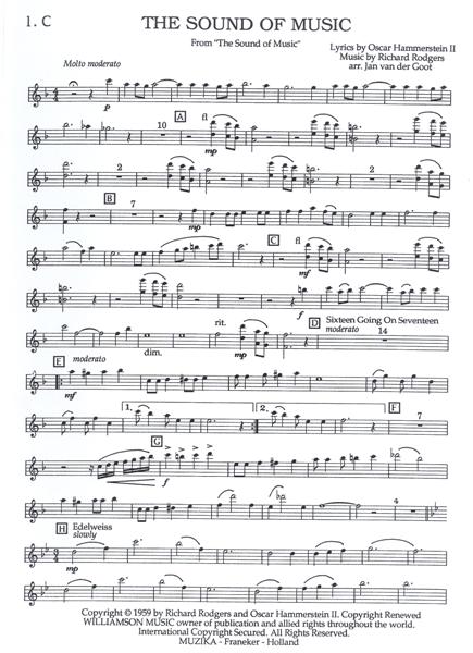 Each set includes a complete conductor's score, a separate pianopart and 16 different parts for 40 individual players.